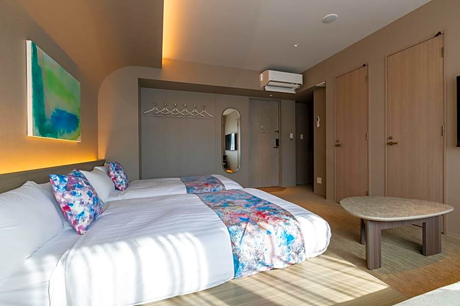 The twin room includes a private bathroom, well-fitted with a bath, a shower, a bidet, a hairdryer and slippers. The well-fitted kitchen features a stovetop, a refrigerator, kitchenware and a microwave. The twin room has carpeted floors, a seating area with a flat-screen TV with streaming services, air conditioning, a safe deposit box, as well as an electric kettle. The unit has 2 beds.